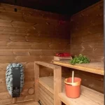 Kirami M Dawn kemur samsett, er 4-6 manna. Saunaklefinn er búinn föstum bekkjum úr hitaþolnum við, sem eru auðveldir í þrifum.
